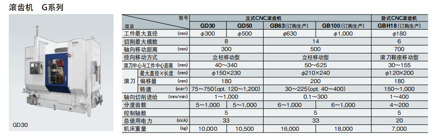 - · G系列提供多種滾齒機,適用于汽車、飛機、船舶、渦輪發電機等多種產品。