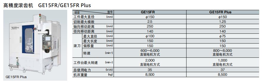 · 高精度滾齒機(jī)GE15FR/GE15FR Plus滿足客戶對減速齒輪等應(yīng)用的高精度和高速加工的要求。
