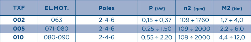 • · TXF 鋁制型成本低、重量輕,提供 002、005 和 010 三種規格。