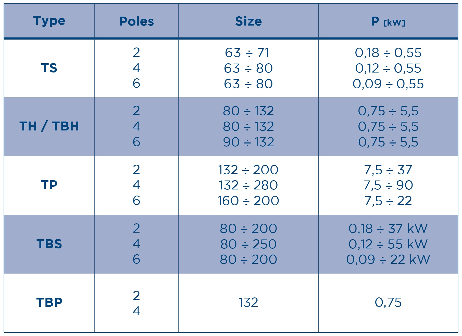 標(biāo)稱功率及尺寸根據(jù)IEC 72-1 標(biāo)準(zhǔn),從0.09到90KW